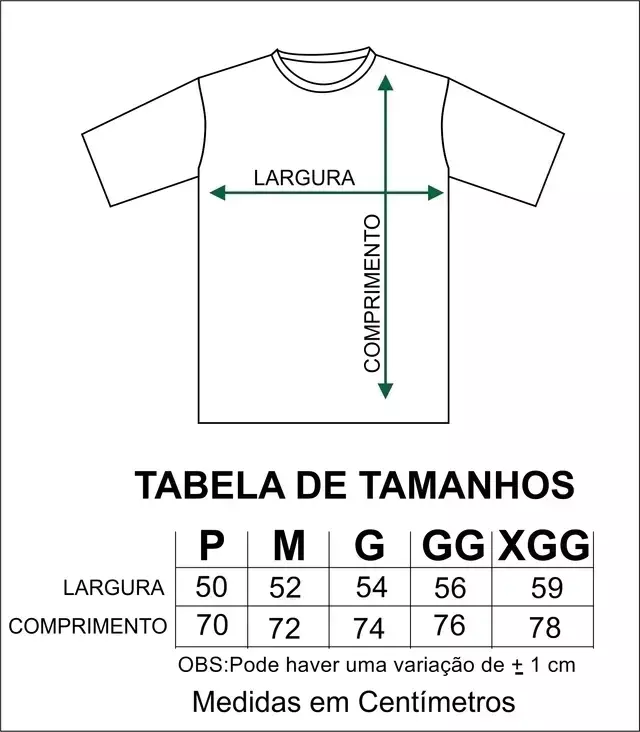 Tamanhos: P ao XGG (Confira a tabela de medidas nas fotos para escolher seu tamanho ideal!)